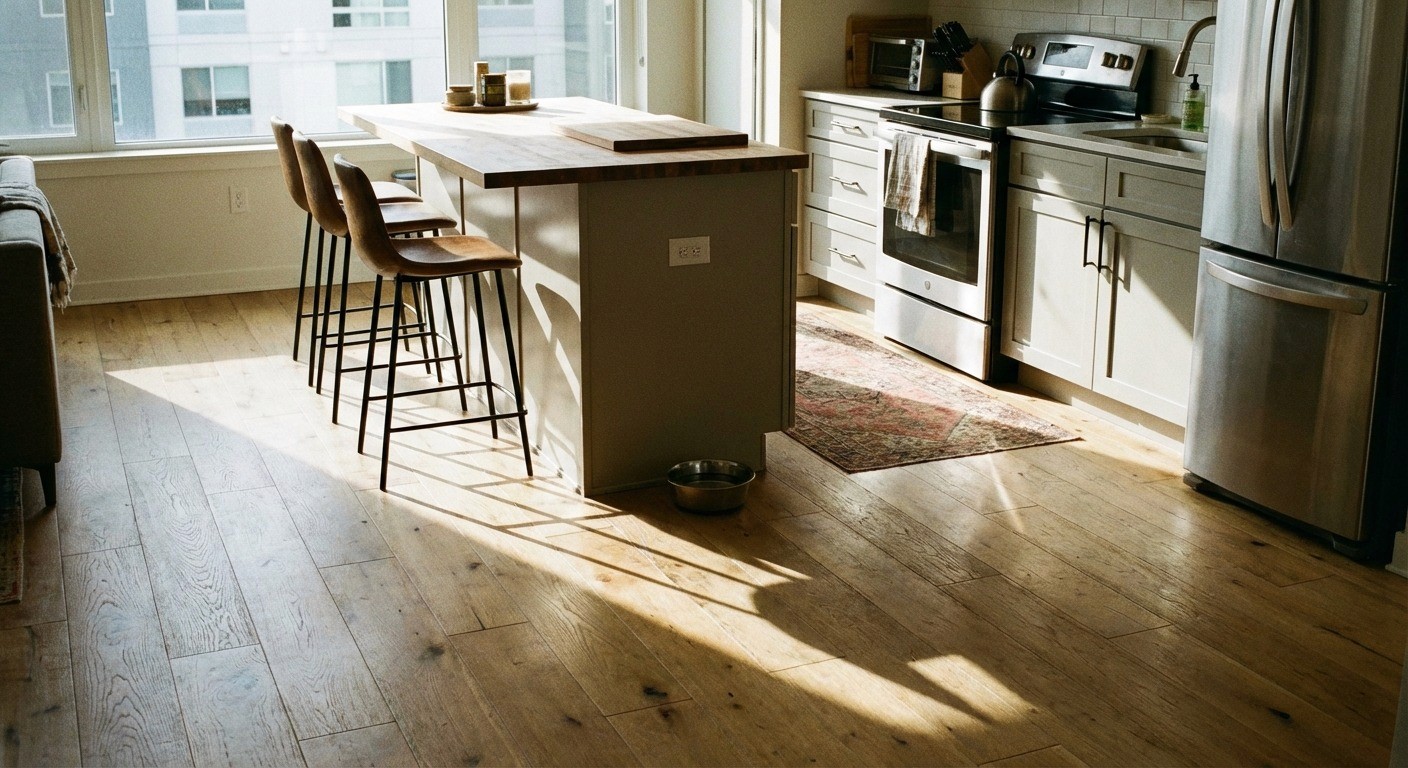 Engineered hardwood sits in a gray zone. Thin wear layers and glued construction mean heat and moisture cause irreversible damage quickly.